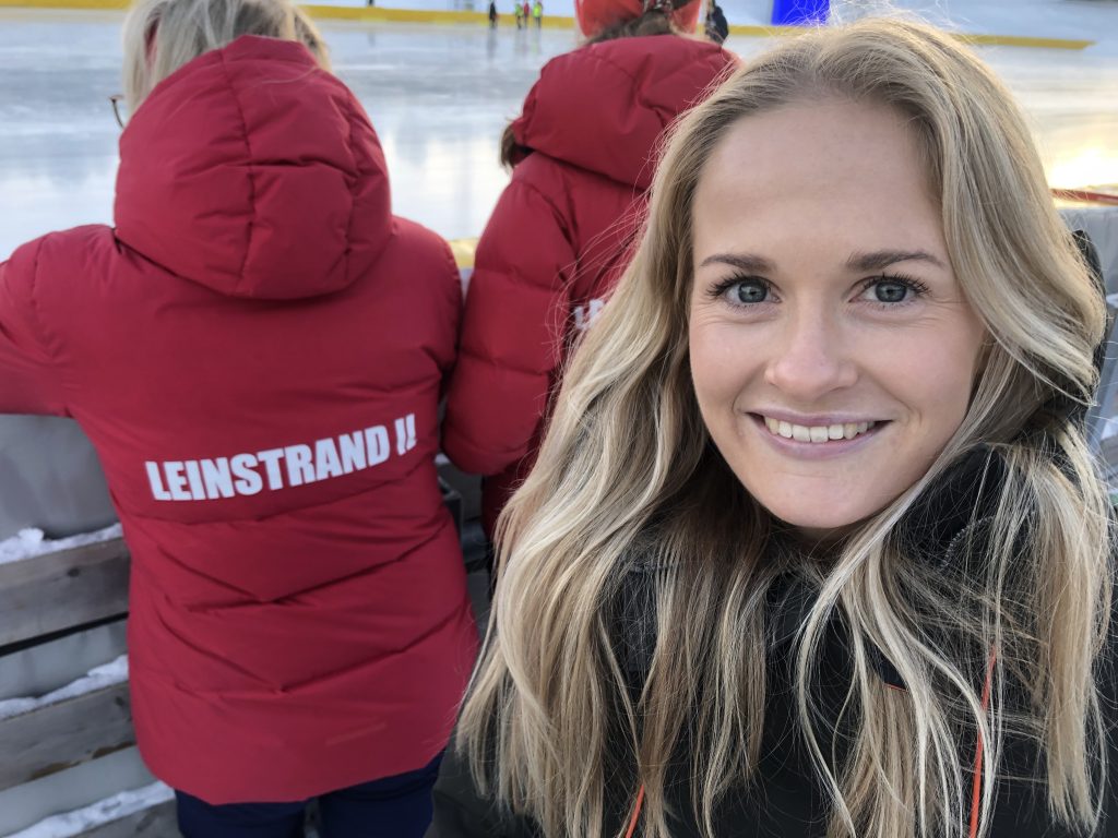 Vi tar turen ned til Leangen kunstisbane for å finne bakgrunn for noen fine bilder. Da vi nærmer oss den speilblanke isflaten, betror Camilla oss: